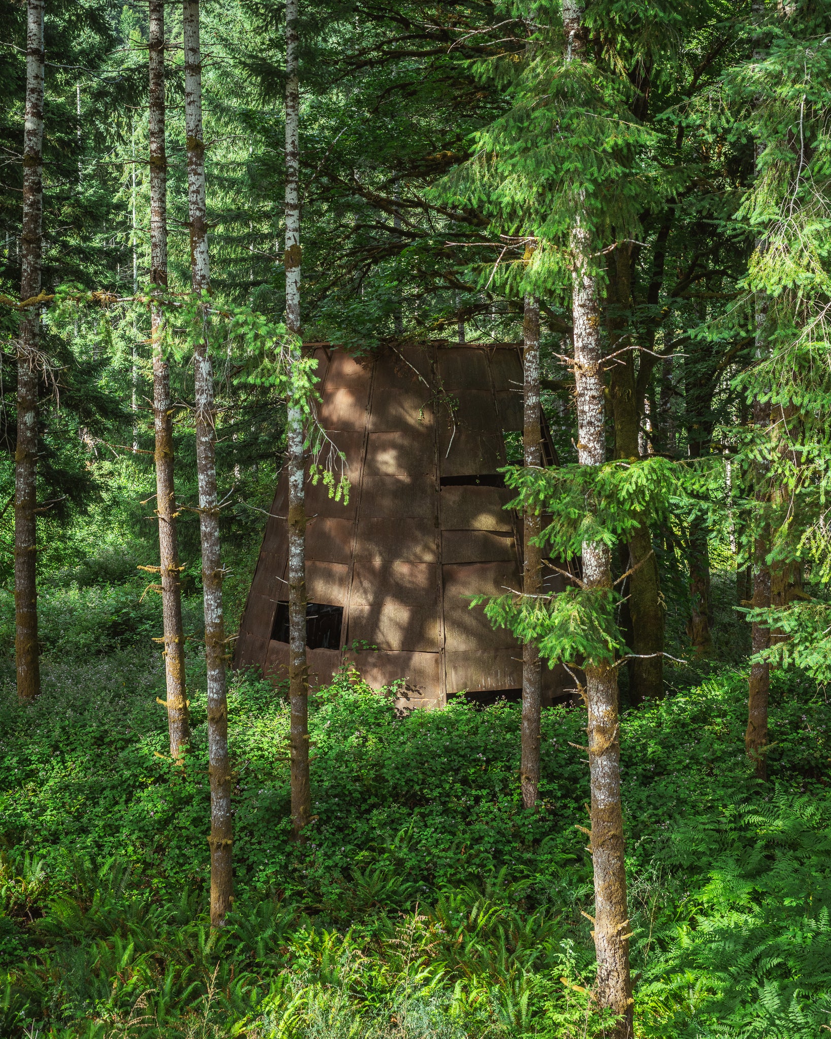 Once used to burn off mill waste from Oregon's logging heyday, this rusted wigwam burner now sits quietly in a clearing, half hidden beneath fir branches and underbrush. Professionally printed on Fujifilm Crystal Archive Lustre Paper.