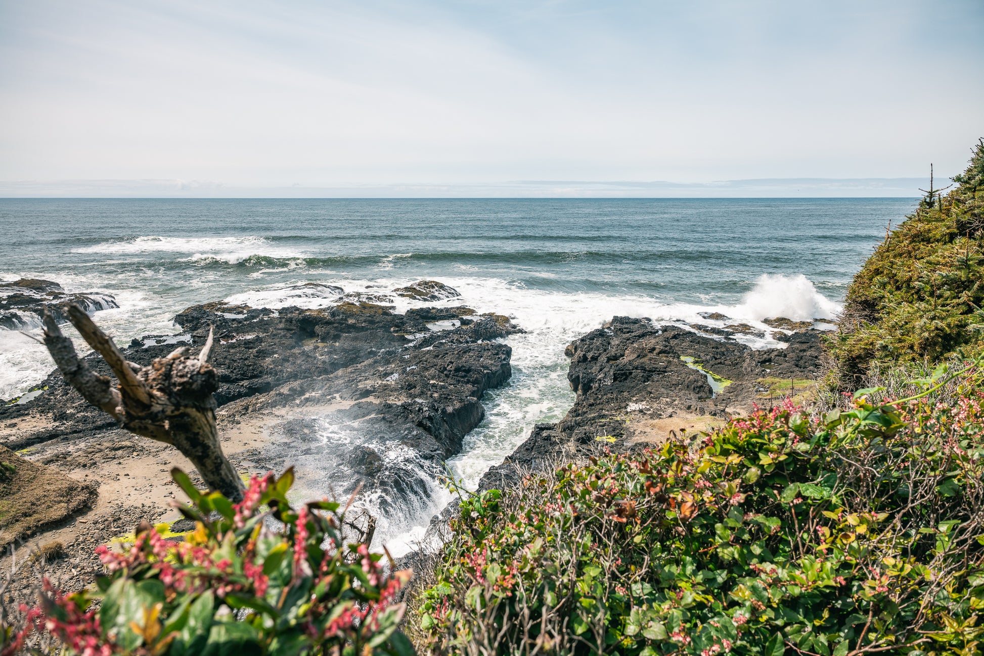 Waves crash into ancient basalt along the central Oregon coast. Professionally printed on Fujifilm Crystal Archive Lustre Paper.