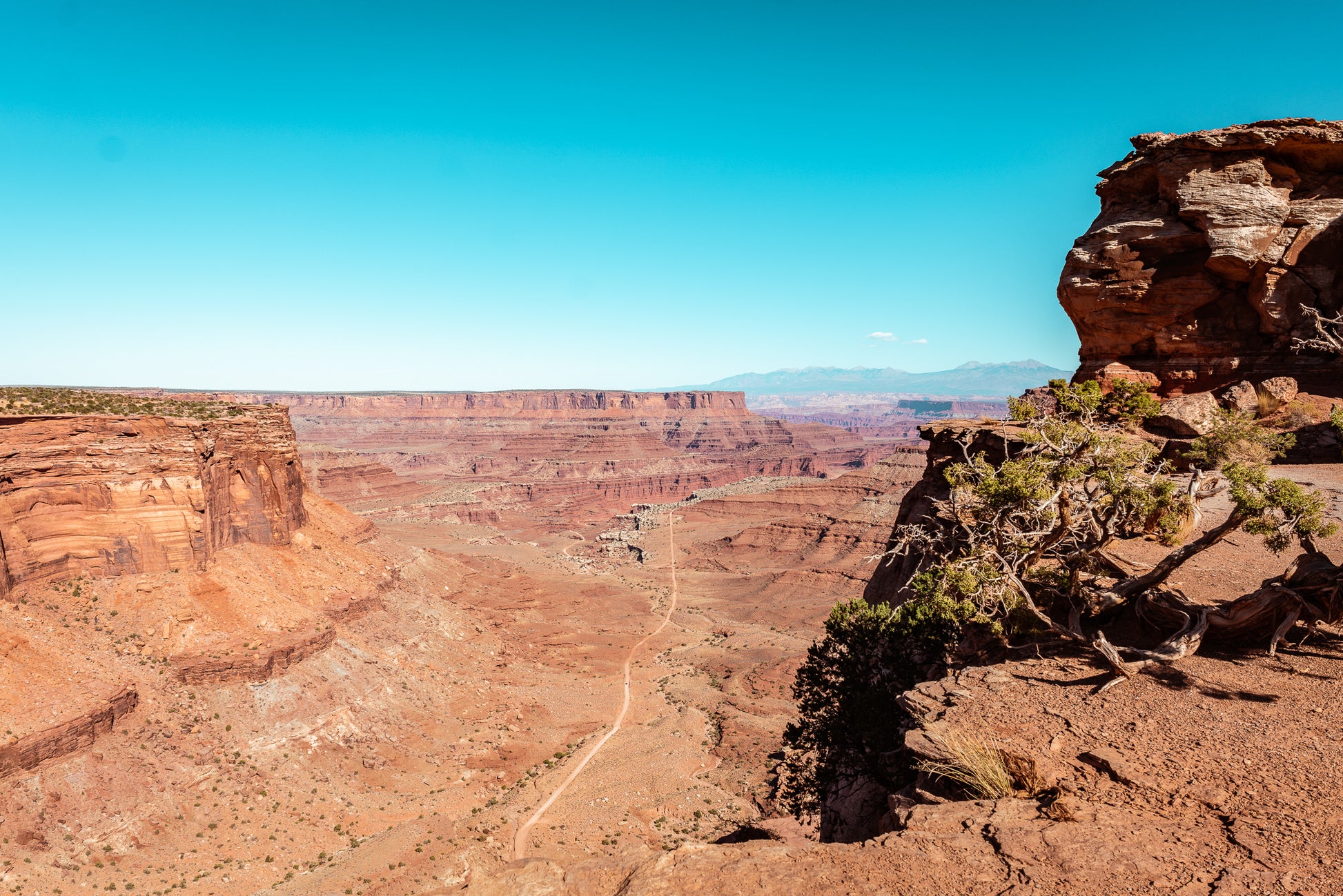 The rugged beauty of Canyonlands National Park stretches endlessly in this sweeping desert vista, where the carved red-rock mesas meet a piercing blue sky. A lonely dirt road snakes into the distance, vanishing into the heart of Utah's Canyon country and highlighting the scale of this vast, untamed wilderness. Professionally printed on Fujifilm Crystal Archive professional Lustre paper.
