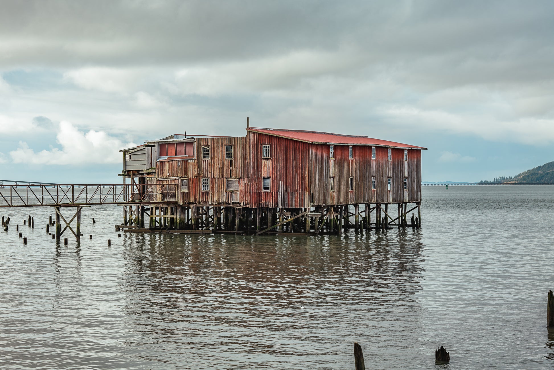 The textures of age - weathered planks, rust-tinged rooflines, and mossy stilts - tell a story of salty air and hard labor. This decaying waterfront structure on the Columbia River is a visual love letter to Oregon's working coast. Professionally printed on Fujifilm Crystal Archive Lustre Paper.
