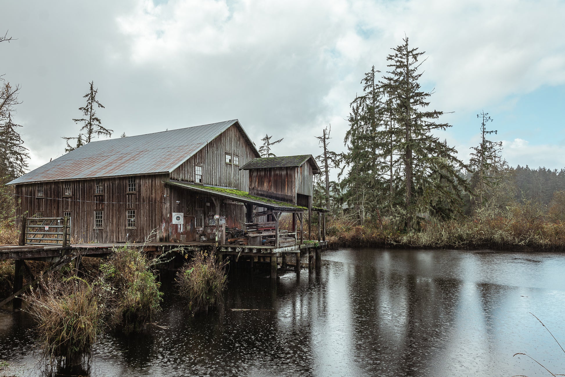 Along a quiet bend in Oregon's coastal estuary country, this weatherworn net shed once buzzed with the rhythm of the fishing fleet. Today its rusting roof and moss-draped awning speak to decades of tides and toil. Professionally printed on Fujifilm Crystal Archive Lustre Paper.